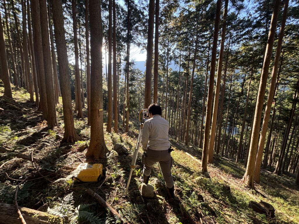 現在自分は後輩の杉本くんと一緒に現場に行くことがほとんどで、今は山の中の境界標設置の作業を進めています。