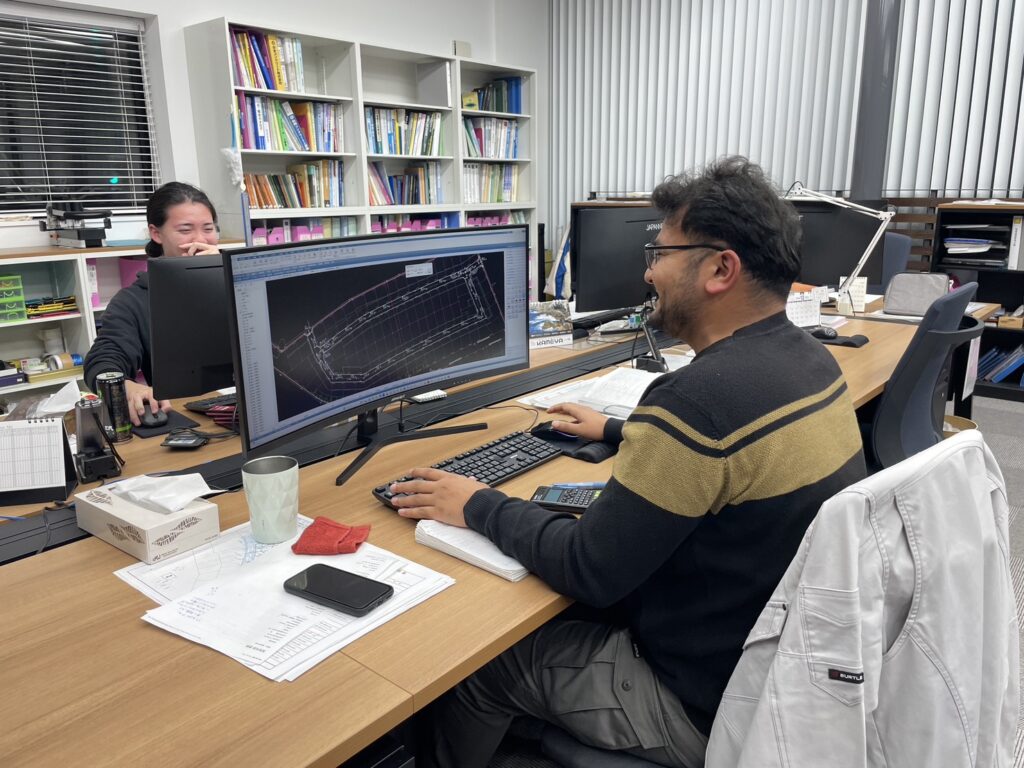 現在では、技術部設計課にて業務をバリッバリに行うことはもちろん、社内にもすっかり溶け込みムードメーカー的な存在でもあります!