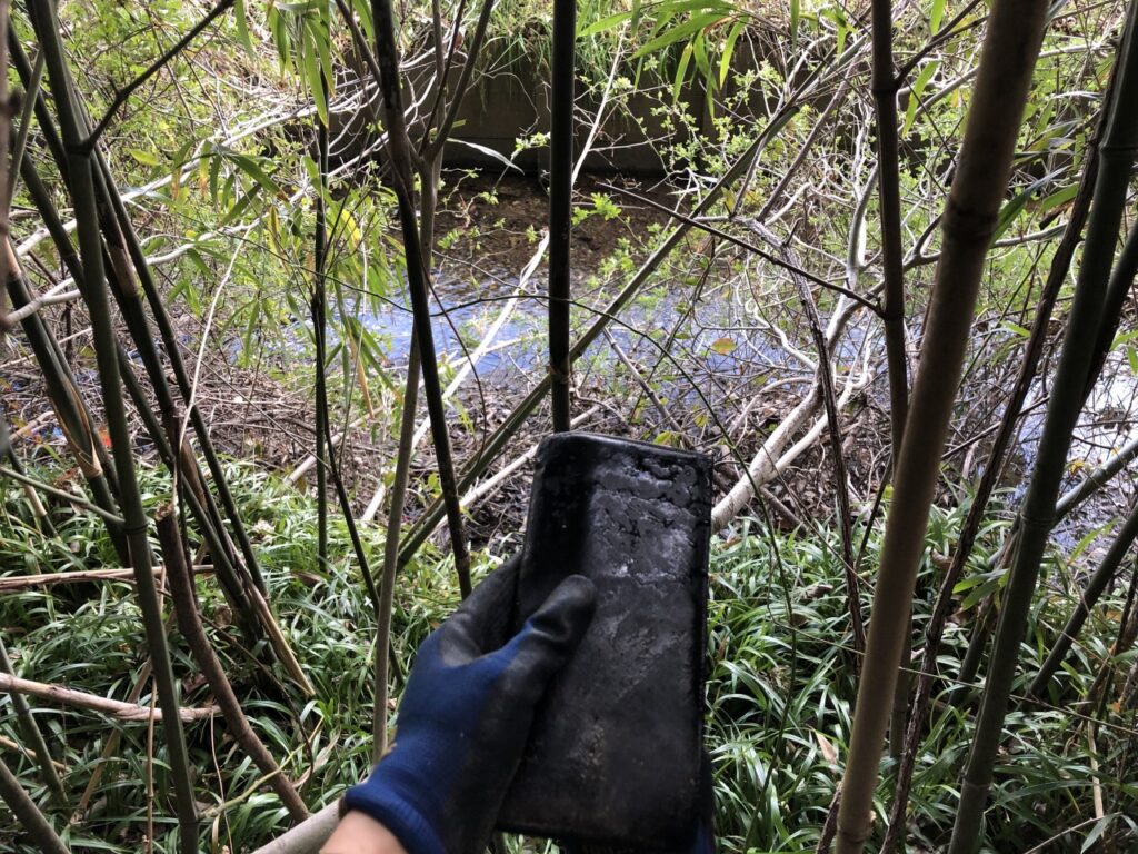(財布をポケットに入れたまま作業してしまい、水路に落としてしまいました…)