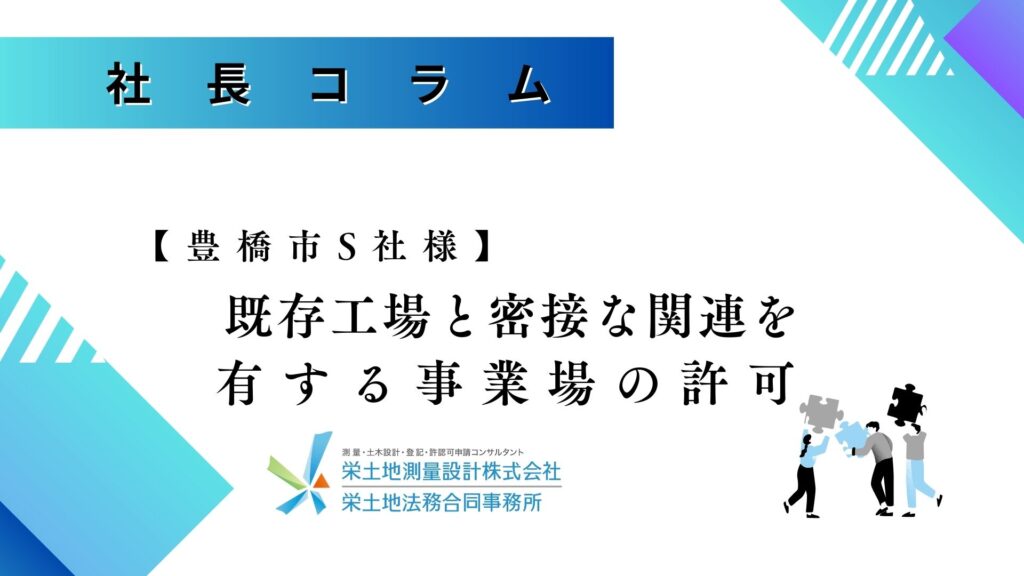 【豊橋市S社様】既存工場と密接な関連を有する事業場の許可