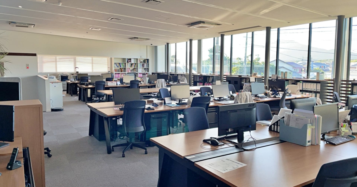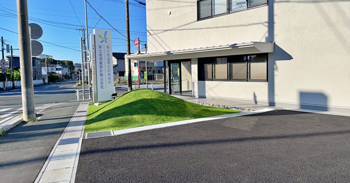 新社屋は、「誠実に、そして正確・迅速・丁寧に」という企業哲学のもと、建物に端正さや折り目正しさを与え、企業の仕事に対する取組みの姿勢や、企業哲学そのものが建物に醸し出されることを意図して計画しました。開放感のある南面の大きなガラス窓や、大地を想起させる交差点に面した築山は、弊社が社会インフラ整備のための、地域に開かれた企業であることを発信します。また、業務の円滑な遂行や、従業員間のコミュニケーションを図るため、建物内部は繋がりのある空間になるようにしました。
